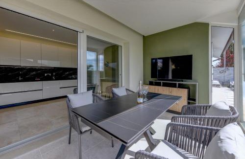 MGH Luxury - Villa Panorama is a recently renovated chalet in Bardolino where guests can make the most of the pool with a view and garden. This property offers access to a terrace and free private parking. Sirmione Castle is 17 miles from the chalet and Grottoes of Catullus is 17 miles away. With free Wifi, this 3-bedroom chalet provides a satellite TV, a washing machine, and a fully equipped kitchen with a dishwasher and oven. Towels and bed linen are featured in the chalet. The accommodation is non-smoking. Gardaland is 7.8 miles from the chalet, while Terme Sirmione - Virgilio is 15 miles away. Verona Airport is 21 miles from the property.