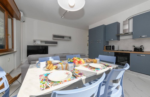 Ideally located just a few minutes' walk from the lake and the lively centre of Desenzano del Garda, this charming flat is the perfect solution for families or small groups looking for comfort, tranquillity and convenience.The flat, recently furnished in a modern style, offers two bedrooms: an air-conditioned double bedroom and a second bedroom with two single beds, perfect for children or teenagers. The bathroom is complete with shower, washing machine and hairdryer.The living area is bright and welcoming, with a comfortable sofa bed, flat-screen TV and a fully equipped open kitchen with oven, microwave, fridge with freezer, kettle, coffee machine and toaster - everything you need to feel at home.Two private balconies offer relaxing corners to read a book, enjoy a coffee or simply enjoy the atmosphere of Lake Garda.Free Wi-Fi, air conditioning in the living area and in the master bedroom and a private garage complete the comforts of this cosy flat.The location is strategic: restaurants, supermarkets and shops are within walking distance, as is the lakeside promenade. It is also ideal for those who wish to get around without a car or arrive by public transport.