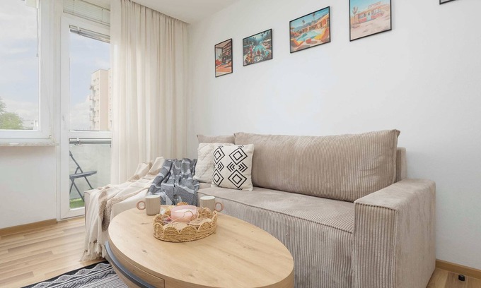 Stay in a great location in Warsaw on Międzynarodowa Street! This spacious apartment for 6 people is ideal for families and groups of friends. Its proximity to Skaryszewski Park (500 m) and PGE Narodowy (1.3 km) makes it a perfect base for sightseeing and active recreation. A fully equipped kitchenette, furnished balcony, fast Wi-Fi and Smart TV will ensure a comfortable stay. Pets are welcome, and we can issue a VAT invoice on request. Don't wait — book today and enjoy an unforgettable stay in Warsaw!