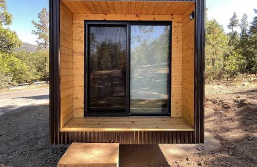 1 bed/ 1 bath Micro Cabin, Located just feet away from beautiful Bass Lake, surrounded by lush forest trees and a nearby waterfall.