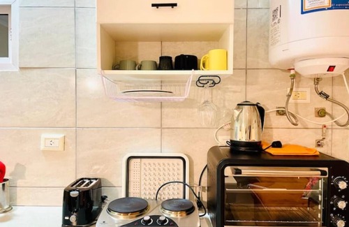 A sofa bed and air conditioning are featured at this 1-bedroom, 1-bathroom rental. Enjoy the free WiFi and TV. Bathroom amenities include a bidet, toilet paper, and soap. The kitchen is equipped with an oven and a toaster. Other amenities include bed sheets and a dining table.
