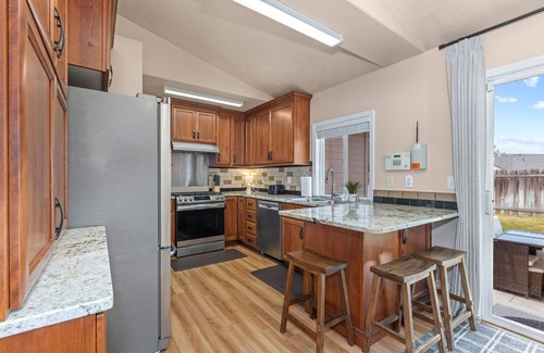 This spacious single-story home offers four comfortable bedrooms, two full bathrooms, and a fully fenced backyard with patio seating. The layout is perfect for groups who value space, convenience, and quiet.