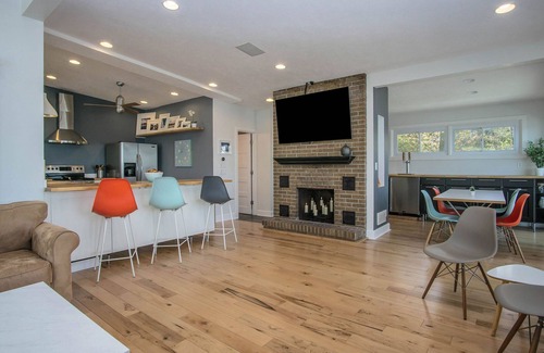 Dedicated work-from-home nook and wi-fi access to ensure you can continue to check in at work if needed. This updated mid-century modern smart home has power shades, indoor/outdoor stereo, and custom lighting options. High-end TV to log into your favorite movie night services. Enjoy the jetted shower after your relaxing day at the beach. The captivating décor and modern furnishings include classic pieces from Herman Miller. This is a pet-friendly home!