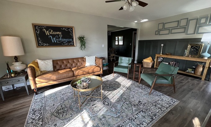 Enjoy your stay in this fully stocked, stylishly renovated, 1947 Tudor style home near historic downtown Washington with it's quaint shops and vibrant social scene. The home is the first floor of a duplex with access to an unfenced yard. The home has two spacious bedrooms and one bathroom. We have lovingly renovated and styled the home ourselves. We love historic charm and have kept many original details. You’ll find unique vintage decor and our custom built furniture in this home.