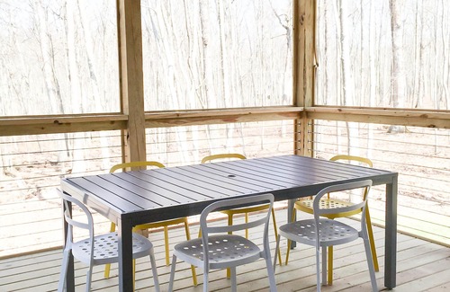 Cook in our stunning kitchen with professional-grade appliances by Bertazzoni, Bosch and Fisher & Paykel. It is large enough for several simultaneous cooks and it is fully stocked. Our 8 foot dining table and screened porch/open deck are perfect for dinner parties.