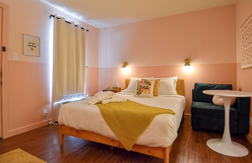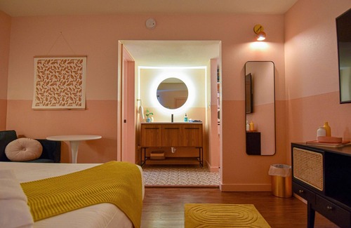 Mid-Century Themed Hotel Room in Fayetteville, AR - The Clementine on College #8 is located in Fayetteville. Mid-Century Themed Hotel Room in Fayetteville, AR - The Clementine on College #8 provides accommodation, featuring Air Conditioner, TV, Wellness Facilities, among other amenities. This Hotel features Air Conditioner, TV, Wellness Facilities, to make your stay a comfortable one.