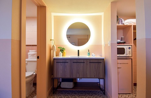 The Clementine on College is part of the redevelopment of the original 1965 Hi-Way Inn Motel in hopes of rehabilitating the site to align with the city's future development. The Clementine consists of 8 of the existing motel units, which, while still small, have been updated and refurbished with a nod back to its midcentury design. The site is also home to Cafe Rue Orleans, a beloved local restaurant where you can be sure to have a great meal during your stay.