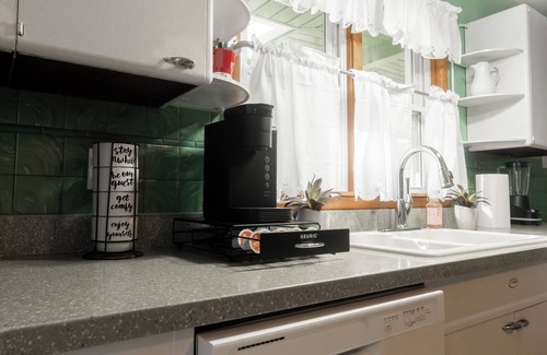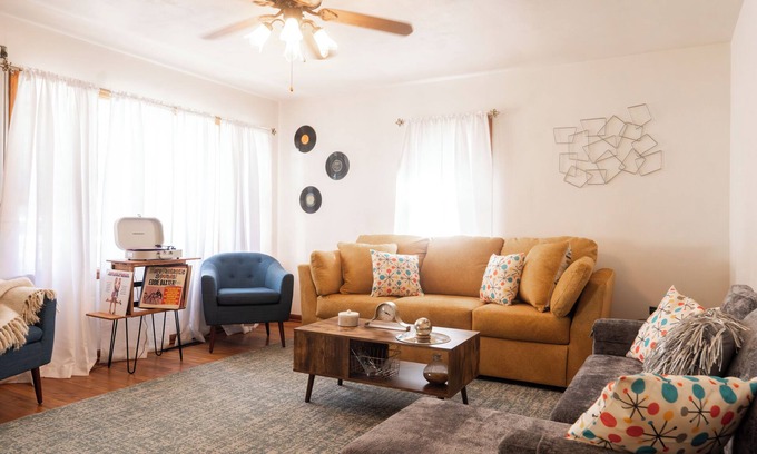 The Cottage is done in a funky mid-century theme. Celebrating the late 1950's into the 1960's. Enjoy colorful murals and hidden atomic kitties, blending nostalgia with modern comfort.