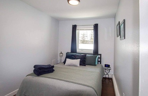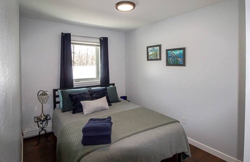 Welcome to your private 2 bedroom retreat in North Pole, AK, nestled in a serene birch forest! As you enter the home, you'll immediately feel at home in the warm and inviting atmosphere. The spacious living room features comfortable seating and a couch that converts into a bed. The fully equipped kitchen has everything you need to prepare and enjoy your meals, including a stove, oven, refrigerator, and all necessary cookware and utensils. A small dining table is also available for enjoying your meals or playing North Poleopoly!! Both bedrooms are furnished with comfortable beds and fresh linens, ensuring a good night's sleep. The master bedroom features a queen-size bed and the second bedroom has two twin-size beds. Both rooms are decorated with a rustic charm and offer plenty of closet space. The bathroom is clean and modern, featuring a shower/tub, toilet, and sink, as well as fresh towels and toiletries. The apartment also features some steel work from a local Blacksmith artist "INak". If you enjoy his hand forged hooks or accents, you can inquire about ordering custom work! Enjoy the space and visit us often!!