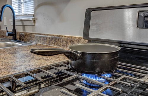 As soon as you step foot into this lovely home you are welcomed by a stylish, yet comfortable living room with smart tv, a foosball table, and attached bath, leading into our outfitted kitchen with new gas range, fridge/freezer, and dishwasher. You'll then make your way through the dining room to the three bedrooms and additional bath. Our guests rave about the comfort of our memory foam mattresses with options for everyone––queen, full, and two twins. Our home was designed and furnished with lovely touches and amenities to provide you with everything you need for a care-free stay.