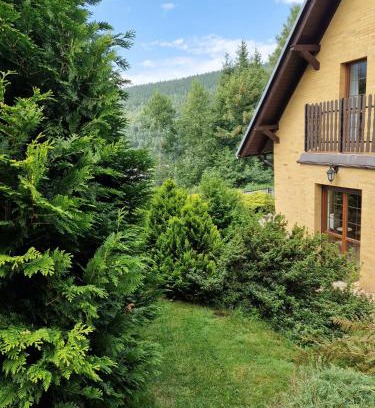 Mikołajówka - przytulny dom z widokiem offers accommodations in Świeradów-Zdrój, 11 miles from Death Turn and 12 miles from Izerska Railway. This property offers access to a balcony, free private parking, and free Wifi. Szklarki Waterfall is 14 miles away and Kamienczyka Waterfall is 14 miles from the apartment. Offering a terrace and mountain views, the spacious apartment includes 4 bedrooms, a living room, satellite flat-screen TV, an equipped kitchen, and 2 bathrooms with a hot tub and a bidet. Guests can enjoy a meal on an outdoor dining area while overlooking the garden views. The accommodation is non-smoking. Dinopark is 12 miles from the apartment, while Szklarska Poreba Bus Station is 13 miles from the property. Copernicus Wrocław Airport is 86 miles away.
