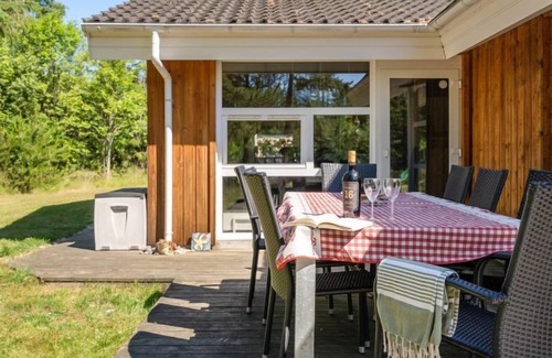 Single-family house, built in 2003. 1.9 km from the sea. Private: natural state property 2'500 m2. Terrace (40 m2), barbecue, children's playground (slide, swing). In the house: sauna, washing machine. Parking at the house. E-charging station. Grocery 1.8 km. The owner does not accept any youth groups.