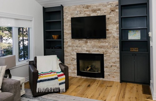 This cottage offers three bedrooms, plus two beautifully updated bathrooms. A fully finished walkout basement with an additional fireplace provides room for the family to spread out and enjoy their own space with additional stunning views of the lake. The lower level offers a small kitchen area which makes sharing this space a breeze! Should you need to sneak away to do a little work, there is a desk area with wifi available for your use!