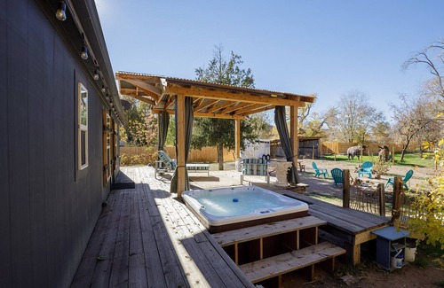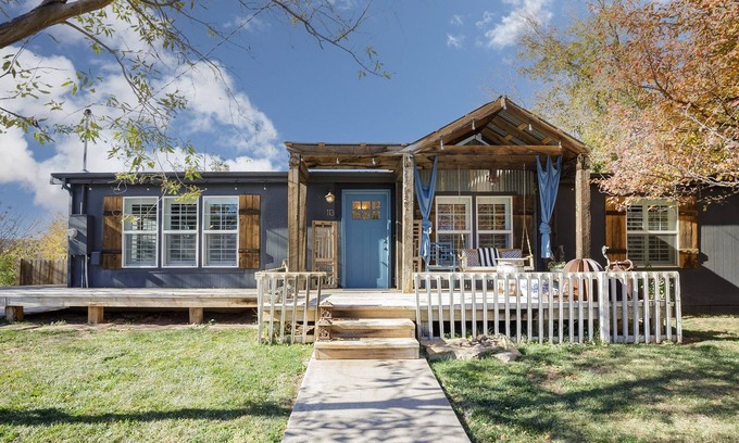 10-15 Minutes to Zion Park entrance. Stylish 4 bedroom (1 king bed suite and 2 queen bed 1 full and 1 single) 2 baths in a charming town very close to the entrance of Zion National Park. Across the street from the "town square". Brand new interior from a 6-month renovation awaits you.