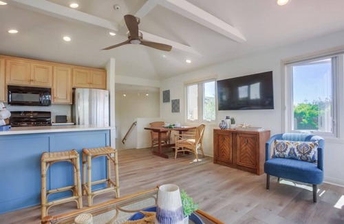 Enjoy a relaxing stay in the stylish Mindfull Cottage. Centrally located in Del Mar, within walking distance to the beach and village. Easy access to the freeway. Peek views from the balcony patio or steps down the alley lead you to panoramic views of the ocean.