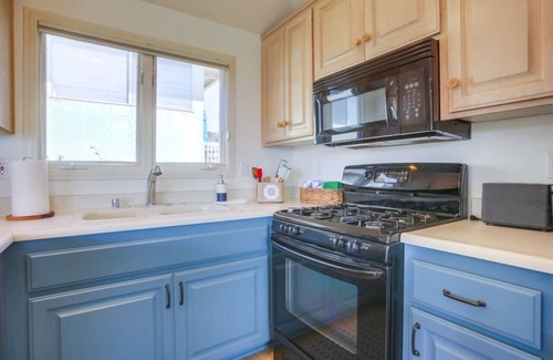 This 2 story unit is quite unique in it`s tucked away fashion. Sleeping arrangement is on the entry level along with the bathroom, upstairs is living space. This living room, kitchen is flooded with natural light, has a peek ocean view and wonderful patio to enjoy coffee/drinks/sunset viewing. If you are inclined to walk 3 doors down, you can sit on the sea wall and enjoy a full ocean view. The Mindful Cottage is a cozy and relaxing spot to get away from it all.