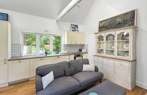 Bathroom: Bath With Shower Over, Toilet. Electric central heating, electricity, bed linen, towels and Wi-Fi included. Cot and highchair available upon request. Welcome pack. Grounds with sitting out area. Private parking for 1 car; additional parking available on request. No smoking. Please note: There is a step in the grounds.. Nestled amidst the serene countryside of Battle, East Sussex, this enchanting barn conversion invites you to experience a harmonious blend of rustic charm and modern comfort. With accommodation for up to four guests (king downstairs double upstairs) this delightful holiday promises a tranquil retreat, enriched by its proximity to an array of local attractions. As you enter the beautifully renovated interior, the open-plan living area welcomes you with its warm ambience and tasteful furnishings. The spacious kitchen, equipped with modern amenities, invites culinary adventures using fresh, locally sourced ingredients. Enjoy meals together at the dining table while soaking in the panoramic views through the windows.