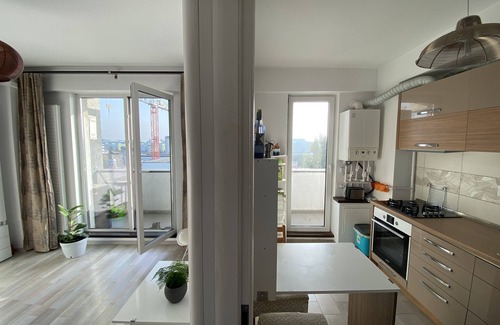 Welcome to our studio. This apartment is brand new in a new building residence (Carol City Park) and has all the amenities necessary just like any other hotel room. Minimal and cozy, it is perfect for weekend getaways or business trips. It is located around 15-20 minutes walking from the city center and 1 minute from one of the most beautiful parks in Bucharest - Carol Park.
