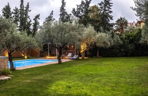 Minimal house with pool and large garden at Varkiza 5 minutes from the beach! is located in Vari. Minimal house with pool and large garden at Varkiza 5 minutes from the beach! provides accommodation, featuring Bedding/Linens, Fireplace/Heating, Internet, among other amenities. This House features Bedding/Linens, Fireplace/Heating, Internet, to make your stay a comfortable one.