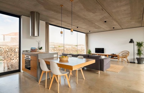 Minimalist house with heated pool and great volcano view is located in Lajares. Minimalist house with heated pool and great volcano view provides accommodation, featuring TV, Private Pool, Ocean View, among other amenities. This House features TV, Private Pool, Ocean View, to make your stay a comfortable one.