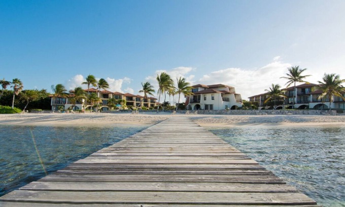 Villa steps from the sand is nestled on its own private beach with all the activities of 7 Mile Beach just a short drive away.