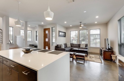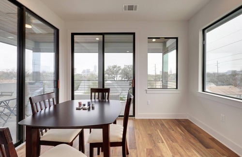 This sleek three-story home is just minutes away from Austin’s most popular venues including Downtown, Rainey Street, and Zilker Park (home of ACL music festival)! Walk to iconic bars and restaurants like Franklin BBQ – voted BBQ in Texas! You'll also enjoy views of the Downtown Austin skyline from the home's two balconies.