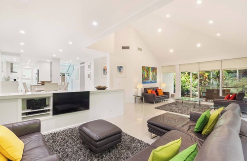 Villa 416 is on the south side of the iconic Mirage Resort grounds. Backing onto the 4th Fairway, its boardwalk approach to the front entrance conveys that real rainforest feel, only to be accentuated by its tropical surrounds. Conveniently located, just minutes from the private, shared villa pool and a short stroll to the central resort’s facilities, this villa is the perfect choice of accommodation and has so much to offer.