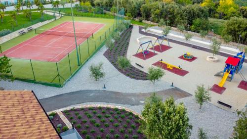 Mirana Luxury Villas features air-conditioned accommodations in Kavran. Each accommodation at the 4-star villa has pool views, and guests can enjoy access to a sauna. There's an outdoor fireplace and guests can make use of free Wifi, free private parking, and an electric vehicle charging station. The villa provides guests with a terrace, sea views, a seating area, satellite flat-screen TV, a fully equipped kitchen with a dishwasher and an oven, and a private bathroom with walk-in shower and a hair dryer. A microwave, a toaster, and fridge are also offered, as well as a coffee machine and a kettle. At the villa complex, units have bed linen and towels. During warmer months, you can make use of the barbecue facilities and eat on the private balcony. You can play tennis at Mirana Luxury Villas. In addition to a seasonal outdoor pool, the accommodation also provides a children's playground. Beach Vinjole is 1.1 miles from Mirana Luxury Villas, while Pula Arena is 14 miles from the property. Pula Airport is 14 miles away.