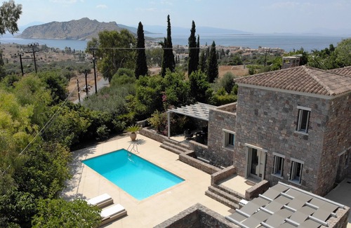 Superb 4 bedroom stone villa with private pool in Aegina Island, one hour boat trip from Athens.