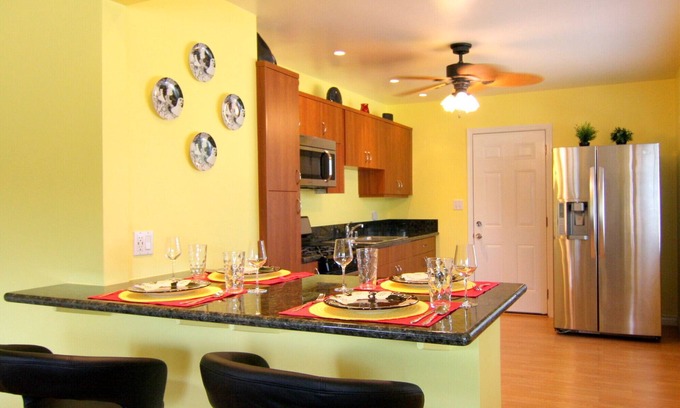 Not only are we right down the street from shopping, restaurants and entertainment, but we are mere minutes from San Diego's best beaches, including Pacific Beach, Mission Beach, La Jolla and Del Mar. Sea World is right around the corner (literally 2 minutes), Balboa Park is just a hop, skip and a jump away, and the Gaslamp District is about 10 minutes down Interstate 5. Let's just say we're about 10 minutes from almost any place you might want to visit in our amazing city, as well as the San Diego International Airport!