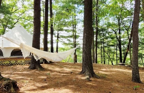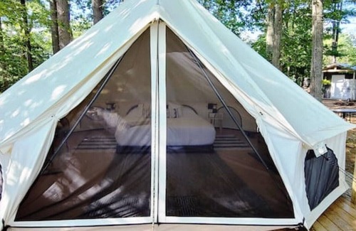 WOOD FIRED HOT TUB!Close to Raystown lake! Welcome to Misty River Retreat! Upon arrival, park your vehicle and transfer your luggage to your very own CAN AM UTV and head down a well maintained trail to a 20 foot Bell tent is perched on a clifftop overlooking a river! This is the ultimate luxury Glamping experience! With your own private bathhouse with running water, a hot water shower and a real flush toilet! This is the perfect romantic getaway or a beautiful, relaxing way to enjoy nature!