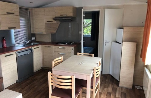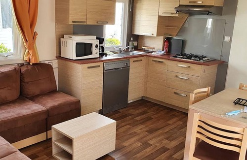 Air-conditioned accommodations at Mobil-home 4-6personnes Avec Terrasse et Piscine Chauffée offer coffee/tea makers. Rooms open to patios. Guests can surf the web using the complimentary wireless Internet access. Kitchens offer refrigerators, microwaves, cookware/dishes/utensils, and dishwashers.