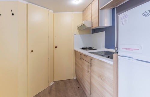 Your mobile home can accommodate up to 6 people, with 2 bedrooms and a convertible sofa. It features a covered terrace, ideal for your meals or moments of rest. Television is available as an option, and end-of-stay cleaning is mandatory.