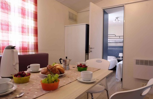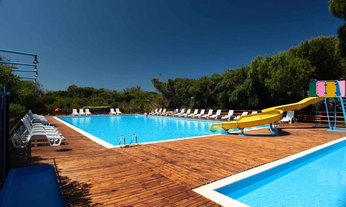 Some services may be subject to a charge. LocationTorre del Pozzo. The mobilehome is located on a campsite, on a enclosed forest plot with meadow, flowers, shrubs and trees. The sandy beach and the lush pine forest characterize this unspoilt corner of Sardinia where the campsite is located, an affordable facility that takes advantage of its location to enjoy the nature of the area by offering all the necessary services Access is via a side road (rubble or gravel). Parking (for 1 car) is available on the property. Parking about 200m far from mobile home. Baggage unloading allowed. Specialair conditioning. Barbecues are not allowed. Air conditioning for a feeFor your safety, the accommodation is equipped with CO2 detector and fire extinguisher. PoolAll pools are available for shared use. Outdoor pool (usable from mid April to mid October). Children's pool. The complex has two swimming pools: one for adults and one for children with slides. Sun loungers are available by the pool (while stocks last). The swimming pools are open from 18 April to 12 October 2025 and the wearing of a swimming cap is compulsory. LeisureIn the complex: mini golf, tennis, boccia / petanque and bike rental. Animation for children. Adult animation. In the summer months, from mid-June to mid-September, a rich programme of daytime and evening entertainment offers variety for both children and adults. The miniclub is the heart of the fun for children, while adults can take part in organised tournaments and games. Numerous sports facilities are available to guests: Tennis court, football pitch, beach volleyball, boccia, mini golf and archery. Minigolf and tennis equipment are available for an extra charge, as well as excursions, bike hire, canoes and SUPs. Horse riding excursions can also be organised nearby. Dogsallowed, EUR 8.00/pet per day. DistancesShopping 200 m, restaurant 200 m, town center 1500 m. airport in Cagliari 114 km. Torre del Pozzo: doctor 2,6 km, bank 2,7 km and pharmacy 5,5 km. Supermarket and restaurant on the campsite. approx. 1.5 km to Torre del Pozzo, approx. 20 km to Oristano. In summer: Mediterranean 300 m in Torre del Pozzo (beach 300 m in Torre del Pozzo featuring sand). golf in Narbolia 4,1 km. tennis in Torre del Pozzo 2,3 km. Located about 1.5 km from Torre del Pozzo and just 20 km from Oristano, Camping Village Bella Sardinia offers direct access to a long, wide sandy beach with a gently sloping shore, ideal for children and for long walks along the shore. Guests can relax on the free beach or hire sun loungers and parasols at Lido Bella Sardinia, with the convenience of a drinks kiosk and the option of hiring canoes to explore the crystal-clear sea. DivisionMobilehome, 1 floor, 3 rooms (including 2 bedrooms), 24 sqm, in total 5 beds (including 1 additional bed), on request additionally 1 child up to 2 years in a baby cot. RoomThe entrance to your mobile home leads directly into the living & bedroom. Bedroom with 1 double bed. Bedroom with 2 single beds, 1 additional bed on sleeping accommodation (only suitable for children under the year of 10) and small wall-mounted bed (suitable for a person of max. 150 cm and 60 kg). Living/bedroom with 1 additional bed on sleeping accommodation, dining area (6 seats), access to the terrace (garden furniture, 1 table, 2 sunbeds) and Additional sleeping space in the living room, represented by the seat with cushions around the dining table. Cooking nook in the living & bedroom with gas stove (4 flames), fridge (icebox) and Basic kitchen equipment. Bathroom with shower, 1 washbasin and WC. Terms of lease and pricesIncluded in the priceOutdoor pool, parking place, electricity, gas, water. Side costs-Costs on the spot:/Obligatory:final cleaning if pets 20 € per object per stay. final cleaning (if not performed by the tenant) 40 € per object per stay. local tax by local tariff (if charged).On request:air conditioning 5 € per object per day. Bed linen (please order at booking) 20 € per person per first time use and changing. Towels (please order at booking) 10 € per person per first time use and changing. baby cot – please order at booking 3 € per bed per day. high chair - please order at booking 3 € per piece per day. For a fee: parking place (additionally).Deposit:EUR 100,-/object