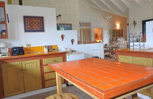 This delightfully charming one-level holiday home is graced with high ceilings and tastefully furnished in island style. Mock Turtle has three (3) en-suite bedrooms, a well-equipped full kitchen, and a well-maintained landscaped garden. The open plan living and dining area lead out to the pool and sun terrace - perfect place for relaxing and watching the sunset. The villa has all the necessary amenities to make your holiday enjoyable: TV, Wi-Fi, washer & dryer, alarm system and secure off-street and covered parking for up to two vehicles.