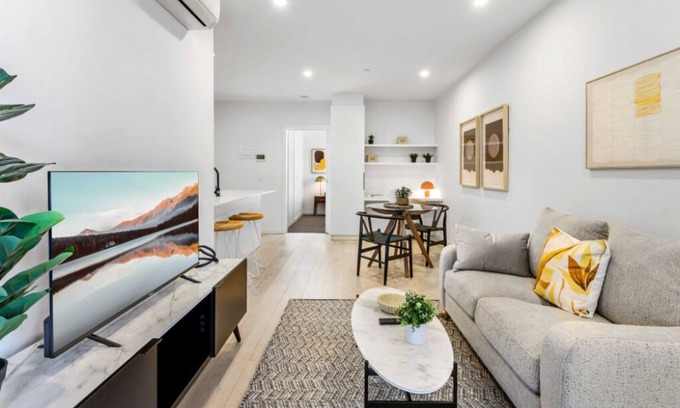 Stay in this modern 1-bedroom apartment and enjoy Melbourne’s iconic vibe.