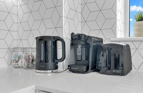 Enjoy our high spec, top floor apartment with free parking, skyline views and many amenities !