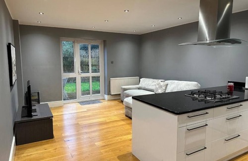 Stylish 2-Bedroom Apartment with Private Garden and Free Parking in Prime Ealing Broadway Location. Enjoy a comfortable and stylish stay in this spacious ground-floor apartment located in the heart of Ealing Broadway, one of London’s most popular neighborhoods. Perfect for families, couples, or business travelers, the apartment features two bedrooms, including a master with en-suite, a second bedroom with ample storage, and 1.5 bathrooms including a separate WC. The open-plan living area is bright and welcoming, with cozy seating, a Smart TV, and a fully equipped kitchen with modern appliances and a dining area ideal for meals or entertaining. Step outside to your own private garden, a rare outdoor space perfect for relaxing or dining outdoors. Additional amenities include free private parking directly outside the apartment and high-speed Wi-Fi, making it ideal for both work and leisure. The property is just a 5-minute walk from Ealing Broadway Station, offering direct access to Central London and Heathrow via the Elizabeth, Central, and District Lines. Explore Ealing’s vibrant high street filled with restaurants, cafés, shops, bars, and a cinema, or enjoy nearby parks and green spaces. Whether you're here for work or vacation, this well-located apartment offers everything you need for a memorable London stay.