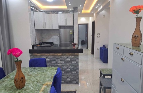 Modern apartment in Agouza on Dr Ali Ibrahim Street behind BTech Ahmed Orabi. The 90m² unit includes 2 bedrooms, living room, bathroom, equipped kitchen. On 5th floor with elevator. Offers quality finishes, air conditioning, full furnishings, large TV, fast free WiFi. Near services, dining, entertainment, and tourist attractions. Perfect for couples, individuals, and business travelers.