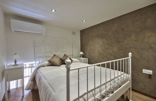 The second floor comprises two double bedrooms, fully equipped with air-conditioning, and designed with a modern finish, combining earthy, neutral colours for a calm and tranquil setting. Each bedroom also includes a full ensuite bathroom complete with shower cubicle. The wrought iron beds complete the Maltese traditional style, while also oozing an aura of modernity through white furnishings and parquet floorings. The bedrooms also feature the unique feature of low-ceilings, offering an even more cosy repose. Wifi and tv are provided for free during any length of stay.