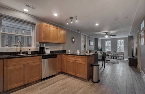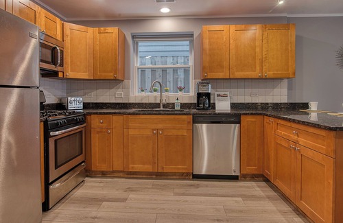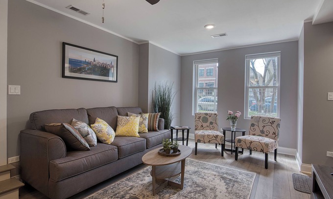 Desired longer stay in this beautiful, safe Roscoe Village/Lake View, surrounded by shops and restaurants. A ground-level first-floor unit, 5-min walk to Brown-line Paulina station, Divvy bike rental; 20-min walk to Wrigley Field, 3 miles to beaches/Lake Michigan, 5 miles to downtown by "L" or a ride; fast WiFi, Chef's kitchen equips supplies for your longer stay; patio in the backyard. 24/7 free street parking without any permits. We try our best to make your longer stay suitable and comfortable!
