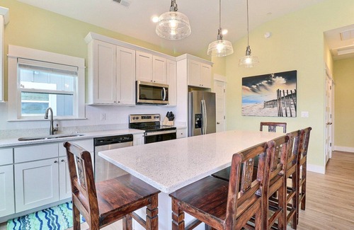 As you enter the home, you'll first notice the decor – classy modern designs with a subtle coastal touch. The master king bedroom includes a vibrant-colored bed, weathered wooden nightstand and dresser, and gorgeous palm tree painting, all tied together by the soothing pale green walls. It includes an en suite bathroom with a marble sink countertop and a massive marble shower! The 2nd king bedroom includes a weathered bed and nightstand that perfectly complement the rustic wooden boat shelf in the corner. Plus, both rooms are equipped with HDTVs!