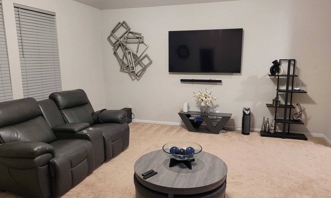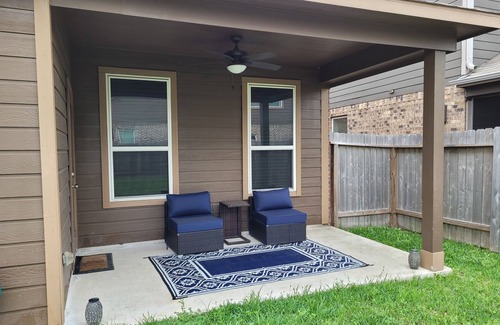 Located in Fresno (Greater Houston Area), enjoy what this 3-bedroom house has to offer. This fantastic property features 3 queen and 1 twin beds, 1.5 bathrooms with a bathtub and hair dryer, and an additional office space. This stylish home is perfect for group & individual trips. A serene retreat designed for relaxation & style. This spacious, modern haven features sleek minimalist decor, soft lighting, and an open layout that fosters tranquility. Unwind in a thoughtfully curated space where comfort meets elegance, complete with high-end amenities & a quiet ambiance. Whether you're here for work or leisure, enjoy a peaceful escape, moments from top attractions. Guests can take advantage of amenities like TV's, washing machine/dryer, AC, WiFi, and heating. Enjoy seating on the covered front and back patio. Our place is equipped for both long or short stays to make your stay one to remember.