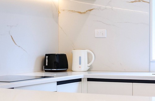 This townhouse offers three bedrooms and two bathrooms, including a private master ensuite. The open-plan living and dining area is filled with natural light, while the fully equipped kitchen features an induction cooktop, oven, dishwasher, and all the essentials for longer stays. A private outdoor area provides extra space to relax after a day of exploring or working.