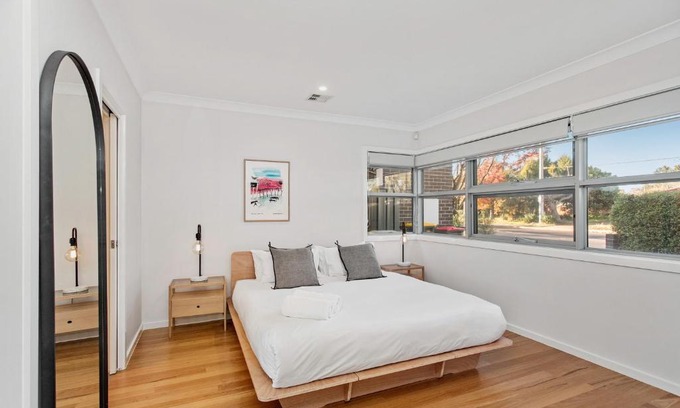 This 4 Bedrooms House is suitable for tourists and travelers. It has several amenities that would guarantee your comfort. These amenities include: Air Conditioner, Parking, Child Friendly, and several others. This is a 4 star rated property . Coming to Canberra and needing a place to stay? Be it for work or for leisure, consider staying at this House for your next visit, you will surely love it.