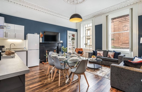 Modern 4 bedroom, City Centre Maisonette is located in City Centre Glasgow. Modern 4 bedroom, City Centre Maisonette provides accommodation, featuring Bedding/Linens, Fireplace/Heating, Child Friendly, among other amenities. This Apartment features Bedding/Linens, Fireplace/Heating, Child Friendly, to make your stay a comfortable one.