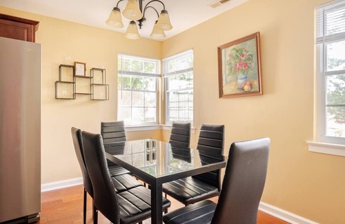 Modern four-bedroom home near Downtown Durham. 10 min. to Duke University Hospital. COVID-19 cleaning. Smart TV in bedroom. New furniture and appliances. Hardwood floor and ceramic tile. Office Desk. Strong Wi-fi. Kitchen equipped with all required utensils. Adjustable motorized single beds. Lamps with USB/wireless charger. BBQ Grill and outside dining on large multi-color lighted Patio. Huge private fenced backyard. Dogs welcome with no Pet fees. Bring whole family with lots of room for fun.