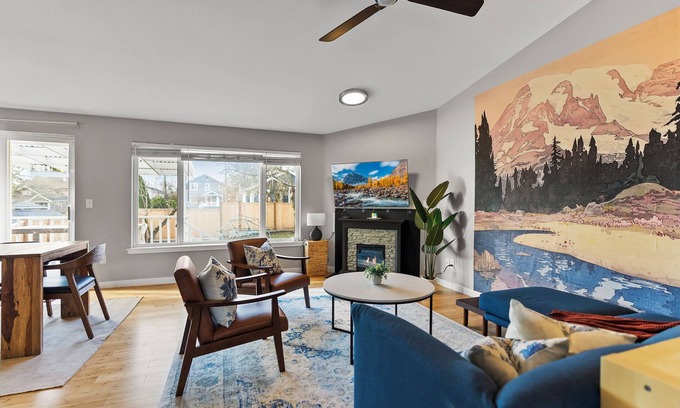 Get ready for the perfect stay in this charming 4-bedroom/3-bathroom house on the edge of the Ballard and Phinney Ridge neighborhoods in Seattle. With 1 king bed, 3 queen beds, and a full-sized sofa bed, you and your guests will have plenty of space to unwind. This spacious property also features 2 kitchens, 2 living areas, a fenced yard, and a bright sunroom, making it perfect for a large group getaway. Enjoy amenities like central AC/heating, WiFi, and a washing machine+ dryer during your stay.