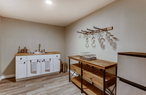 The basement level features a kitchenette, dining area, and plenty of entertainment space, which includes a TV, board games, and a shuffleboard table! You will also find 2 additional bedrooms, 1 shared bathroom with a rain shower, and a laundry room.