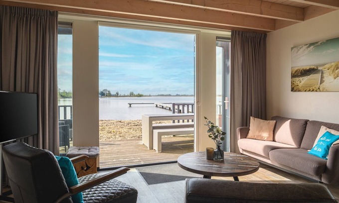 Modern 6-person beach lodge is located in Echtenerbrug. Modern 6-person beach lodge provides accommodation, featuring Balcony/Terrace, Security/Safety, Child Friendly, among other amenities. This Cabin features Balcony/Terrace, Security/Safety, Child Friendly, to make your stay a comfortable one.